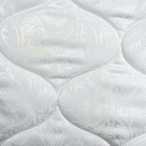 Верхнее покрытие матраса бязь с рисунком со стежкой на ватине - хлопчатобумажная ткань полотняного переплетения. Особенность плетения заключается в том, что нити основы и утка имеют одинаковый размер и переплетаются равномерно. Ткань не имеет характерного блеска. Материал полностью натуральный. В целях достижения большей плотности, в волокна бязи добавляют синтетические нити. Однако доля синтетической примести не превышает 20%. Бязь широко используют при изготовлении верхнего покрытия детских матрасов.